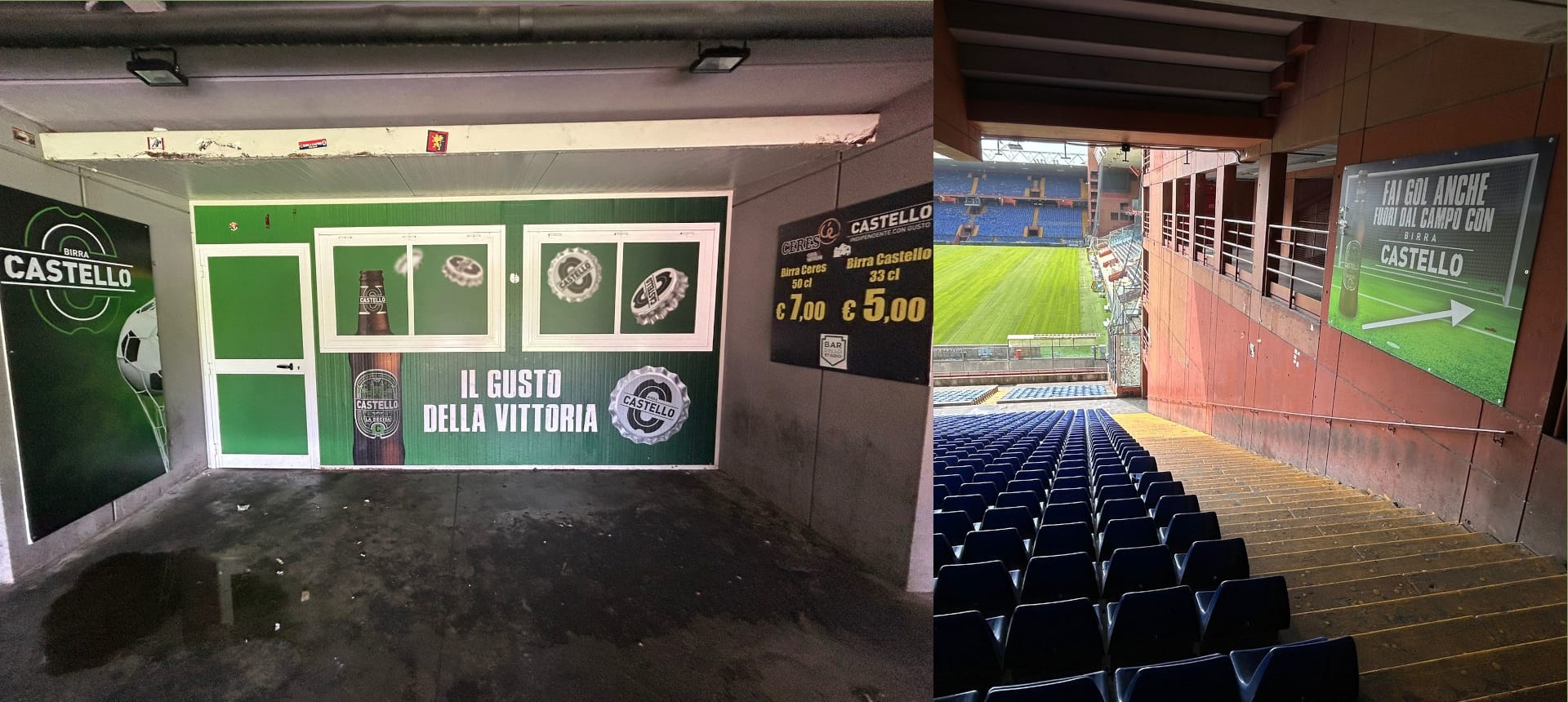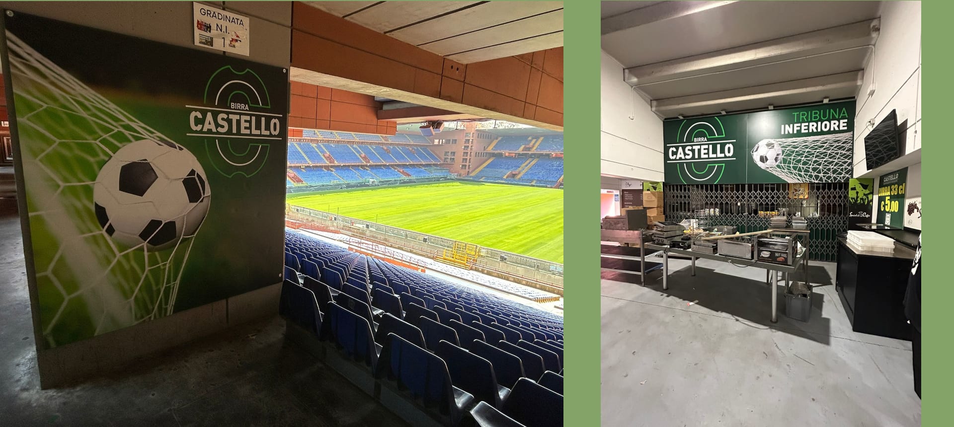 Allo stadio Luigi Ferraris di Genova, noto come stadio di Marassi, si beve Birra Castello. È l’impianto calcistico più antico d’Italia ancora in attività, inaugurato nel 1911.